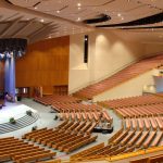 Candela Controls, Inc. upgraded the house light controls and dimmer racks providing remote monitoring, operation and management features. The original dimmers were upgraded to DMX512 which allowed for control from the main lighting console. During the upgrade process, Candela Controls also installed the network infrastructure necessary for future upgrades of the production lighting, as well as the other architectural control systems throughout the campus. In the process of doing the upgrade, several incorrectly sized solid-state relay (SSR) units were also found and replaced and all other performance issues with the house lighting system were resolved.